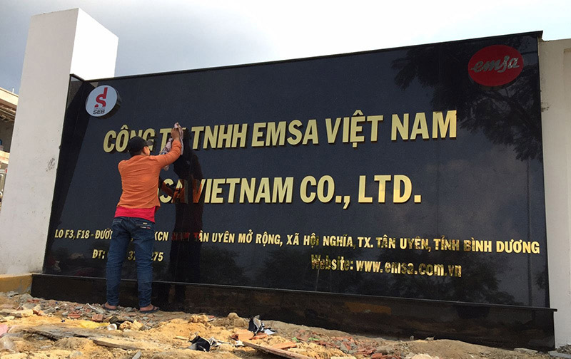 Biển tên công ty: Gắn trước tòa nhà, tầng, cửa ra vào công ty.